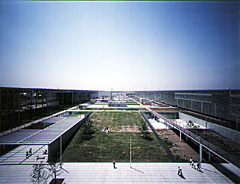 Saitama Prefectural University (1995-1999) location: Koshigaya, Saitama Prefecture principal use: university site area: 102,265.37m2 building area: 34,030.77m2 total floor area: 54,080.11m2 structure: steel framed reinforced concrete, reinforced concrete, precast concrete, and steel frame; 4 stories maximum height: 18,230mm architects: Riken Yamamoto & Field Shop associate architects: ISSO Atelier structural engineers: Takumi Orimoto Structural Engineer & Associates, Plus One Structural Des. & Eng. Firm mechanical engineers: Sogo Consultants landscape designers: Sowa Civil Engineering furniture and sign producers: A works furniture designers: Yasuo Kondo Design Office, Leading Edge Design sign designers: Hiromura Design Office acoustic designers: Nagata Acoustics textile designers: Taguchi Design Office lighting design collaborators: Lighting Planners Associates landscape design collaborators: studio on site artwork designers: Miho Akioka, Charles Ross, Zenji Funabashi, Fong Zhenning, Tatsuo Miyajima, Kikuma Mochizuki general contractors: JV of Obayashi, JDC Corporation, Kabuki Construction and UDK JV of Shimizu, Oki and Shoei JV of Tokyu, Wako and Kawaguchi Construction JV of Mitsui, Mitsuwa and Matsunaga JV of Takamoto, Sumida and Nojiri completion date: January, 1999 next back top |