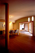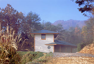 『新建築』1998年3月号で掲載された「雪花山房」(蕎麦打ち教室,蕎麦を食する店舗)を営む夫婦のための住居.教室あるいは店舗を訪れた客人を招くための居室も併せもつ.陽が上がるころ周囲の山波からは一面に雲海が広がり,日没時には夕日で赤く染まった山肌が次第に薄暮れに包まれ,やがて滲むように消えていくという,日の出と黄昏を示す言葉である「晨昏(しんこん)」が引用されて名付けられている.
